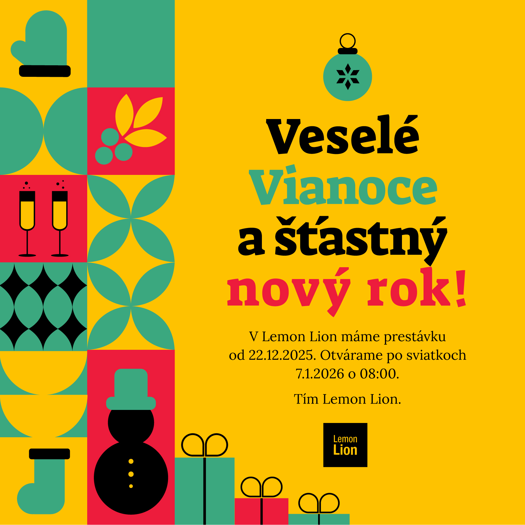 Veselé Vianoce a pokojné prežitie sviatkov! Lemon Lion bude mať od 22. 12. 2025 prestávku. Opäť otvárame 7. 1. 2026 o 08:00.